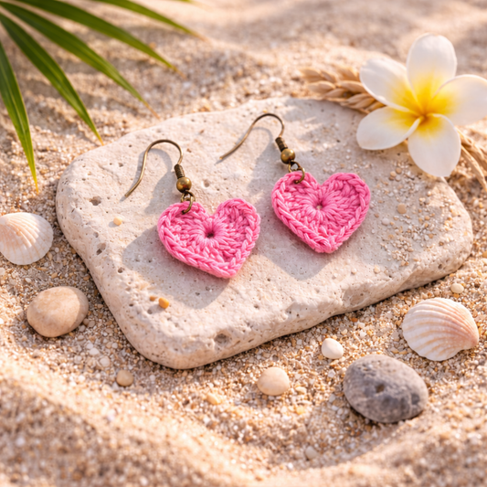 Pink Heart Crochet Earrings — Handmade Lightweight Boho Jewelry | Peleni Luxe