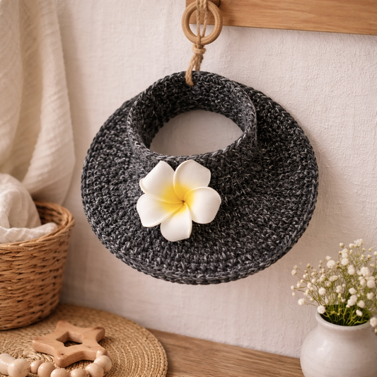 Peneli Luxe Handmade Gray Crochet Baby Beanie with Pink Flower – Soft & Cozy Hat