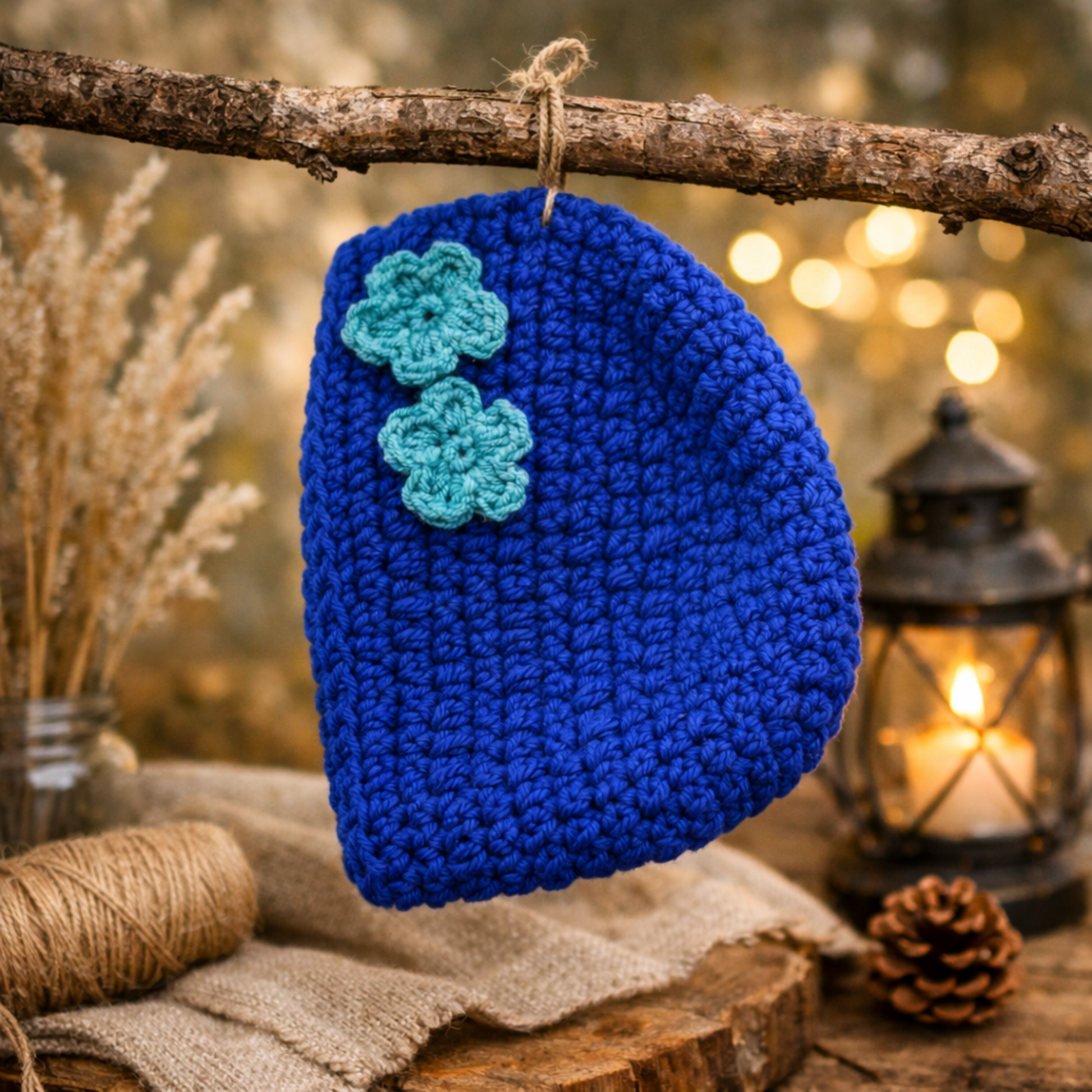 Designed with a timeless shape and finished with delicate crochet flower accents, this beanie adds a charming, playful touch to any outfit — perfect for both casual days and special moments.